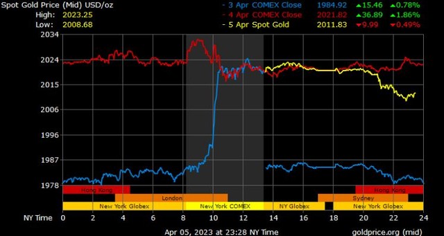 Thêm vào đó, lực đẩy giúp vàng bật mạnh trên mốc 2.000 USD là dữ liệu kinh tế yếu hơn của Mỹ, cho thấy Cục Dự trữ Liên bang chắc chắn có thể xem xét tăng lãi suất chậm hơn và tạm dừng tăng lãi suất sớm hơn. Và dữ liệu đáng quan tâm trong tuần của Hoa Kỳ tới đây là báo cáo tình hình việc làm cho tháng 3 từ Bộ Lao động vào thứ Sáu.