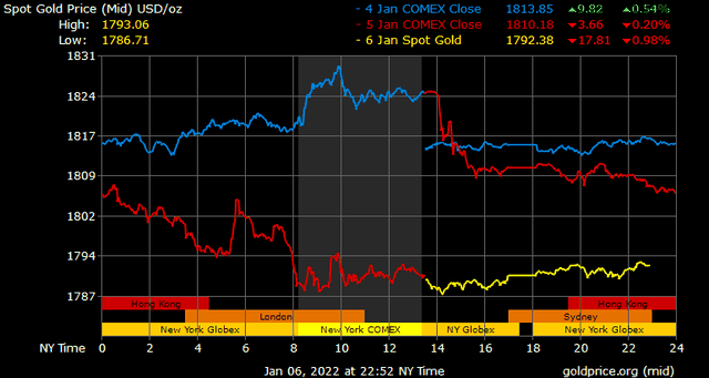 Giá vàng tương lai giao tháng 2/2022 trên sàn Comex New York tăng gần 3 USD lên 1.792 USD/ounce.