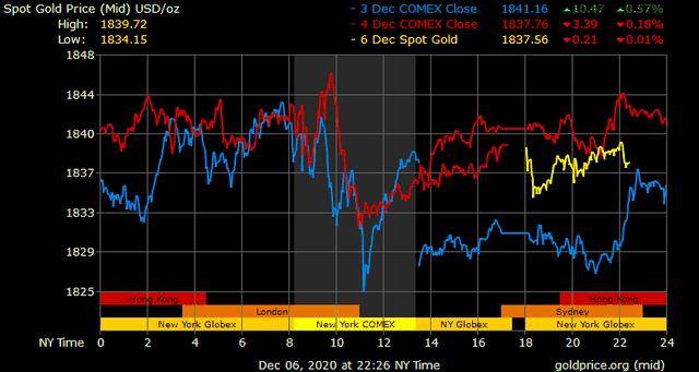Giá vàng tương lai giao tháng 1/2021 trên sàn Comex New York tăng 1,1 USD lên 1.838,6 USD/ounce.