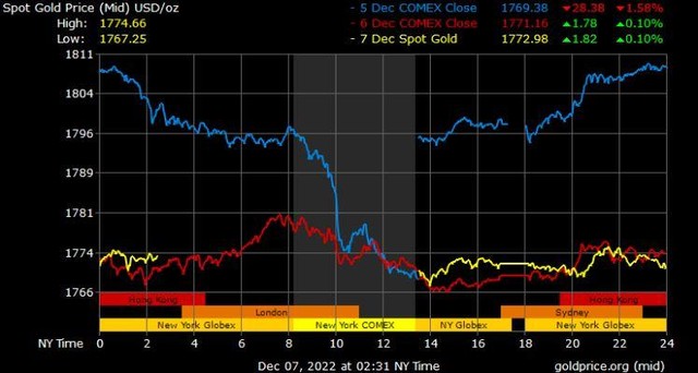 Giá vàng tương lai giao tháng 12/2022 trên sàn Comex New York tăng nhẹ 1,1 USD lên mức 1.781,3 USD/ounce.