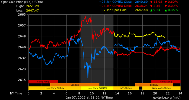 Trên thị trường vàng thế giới, giá vàng giao ngay chốt phiên hôm qua tại Mỹ tăng 12,5 USD lên 2.648,6 USD/ounce. Sang phiên châu Á sáng nay, giá vàng đảo chiều giảm nhẹ 2 USD xuống 2.646,6 USD/ounce.