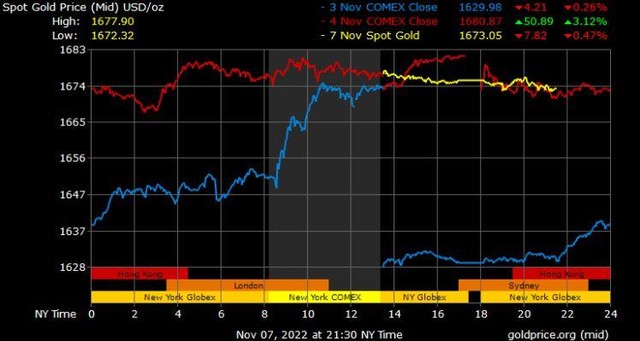 Giá vàng tương lai giao tháng 12/2022 trên sàn Comex New York tăng 3,9 USD lên mức 1.680,5 USD/ounce.