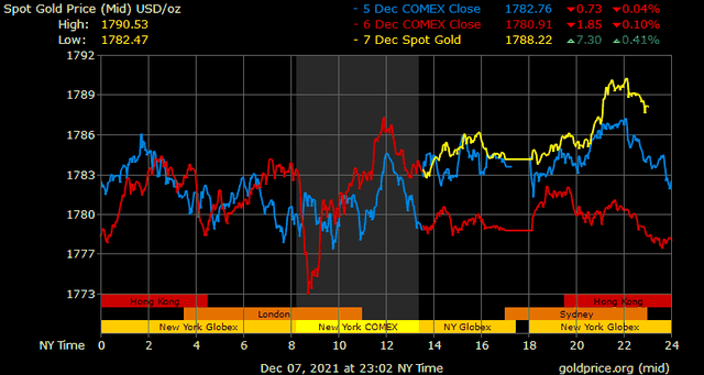 Giá vàng tương lai giao tháng 1/2022 trên sàn Comex New York tăng hơn 5 USD lên 1.789,8 USD/ounce.