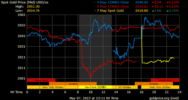 Thị trường vàng đã giảm vào cuối tuần trước khi nỗi lo về rủi ro ngân hàng lắng xuống và báo cáo việc làm tháng 4 của Hoa Kỳ tốt hơn mong đợi.