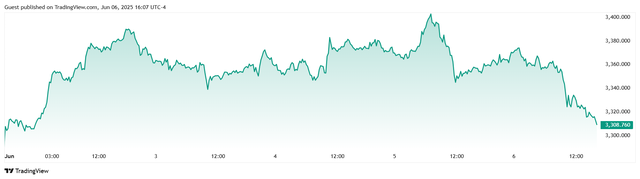 Giá vàng tương lai giao tháng 8/2025 trên sàn Comex New York giảm 28,5 USD, tương ứng giảm 0,84% xuống mức 3.346,6 USD/ounce. Tính chung cả tuần, giá vàng giao ngay tăng 31,2 USD/ounce, tương ứng tăng 0,94%.