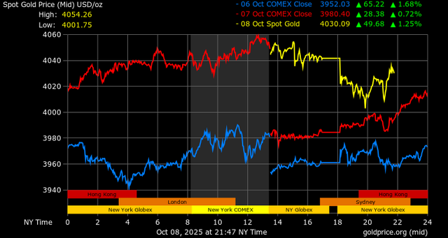 Giá vàng tương lai giao tháng 12/2025 trên sàn Comex New York tăng 66,1 USD, tương ứng tăng 1,65% lên mức 4.070,5 USD/ounce.