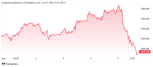 Marc Chandler, Giám đốc điều hành tại Bannockburn Global Forex cho biết: “Việc phá vỡ mức 2.300 USD trên thị trường giao ngay sẽ hướng tới mức thấp nhất trong tháng 5 gần 2.277 USD và nếu khu vực này bị phá vỡ, kim loại màu vàng có thể bị đẩy xuống mức 2.220 USD”.