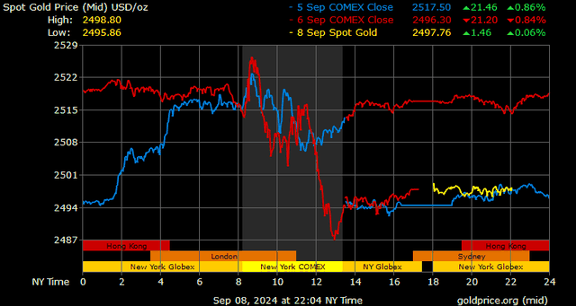 Dữ liệu kinh tế gần đây đã đóng vai trò quan trọng trong việc định hình hành vi thị trường vàng. Kim loại quý này vừa trải qua tuần đầu tiên của tháng 9 biến động trong biên độ mạnh và hiện đang đi ngang dưới mốc 2.500 USD/ounce.
