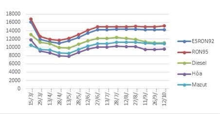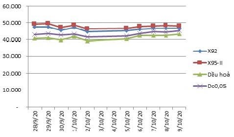 Biến động giá bán lẻ xăng dầu trong nước tháng 03/2020-10/2020