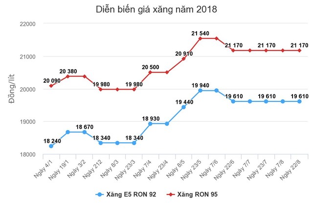 Sau điều chỉnh, giá xăng E5RON 92 vẫn ở mức 19.610 đồng một lít, xăng RON 95 là 21.170 đồng.