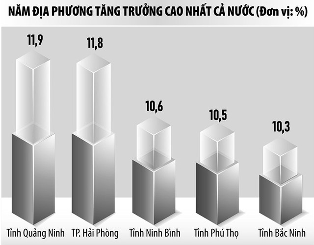 Đứng thứ hai là TP. Hải Phòng, tăng trưởng 11,81%. Tiếp theo là Ninh Bình (10,65%); Phú Thọ (10,52%); Bắc Ninh (10,27%) và Quảng Ngãi (10,02%). Việc các địa phương này đạt tốc độ tăng trưởng GRDP cao, theo Cục Thống kê, một phần quan trọng là nhờ khả năng hấp thụ vốn đầu tư, đặc biệt là vốn đầu tư trực tiếp nước ngoài (FDI) và sự bứt phá của các tổ hợp công nghiệp, dịch vụ hiện đại.