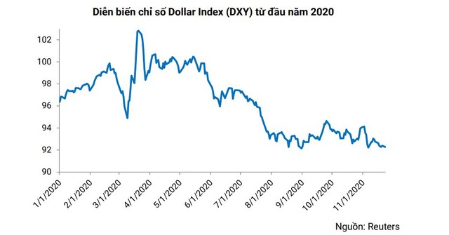 Mặt khác, trên thị trường quốc tế, chỉ số Dollar Index (DXY) đã giảm khoảng 4% kể từ đầu năm và hiện đang áp sát mức đáy trong vòng 2 năm qua.