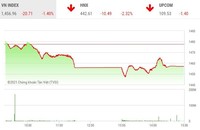 Chốt phiên sáng, sàn HOSE có 270 mã tăng và 191 mã giảm, VN-Index tăng 20,07 điểm (+1,38%) lên 1.477,03 điểm. Tổng khối lượng giao dịch đạt 889,48 triệu cổ phiếu, giá trị 25.443,55 tỷ đồng, giảm 34,6% về khối lượng và 44,16% về giá trị so với phiên hôm qua. Giao dịch thỏa thuận đóng góp 34,47 triệu đơn vị, giá trị hơn 1.399 tỷ đồng.