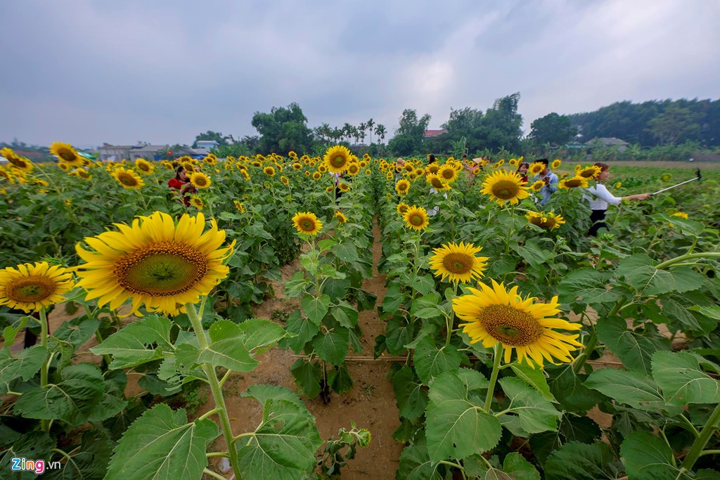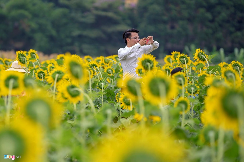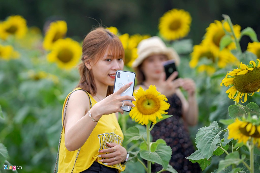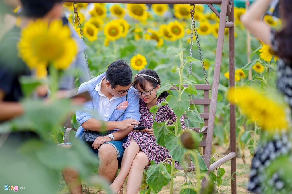 Cánh đồng hoa hướng dương rộng 2.500 m2 thu hút rất đông du khách, đặc biệt là giới trẻ đến tham quan, check-in những ngày nghỉ lễ 30/4, 1/5.