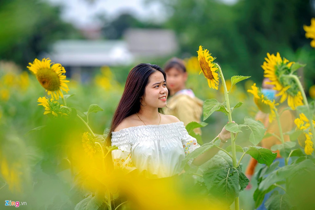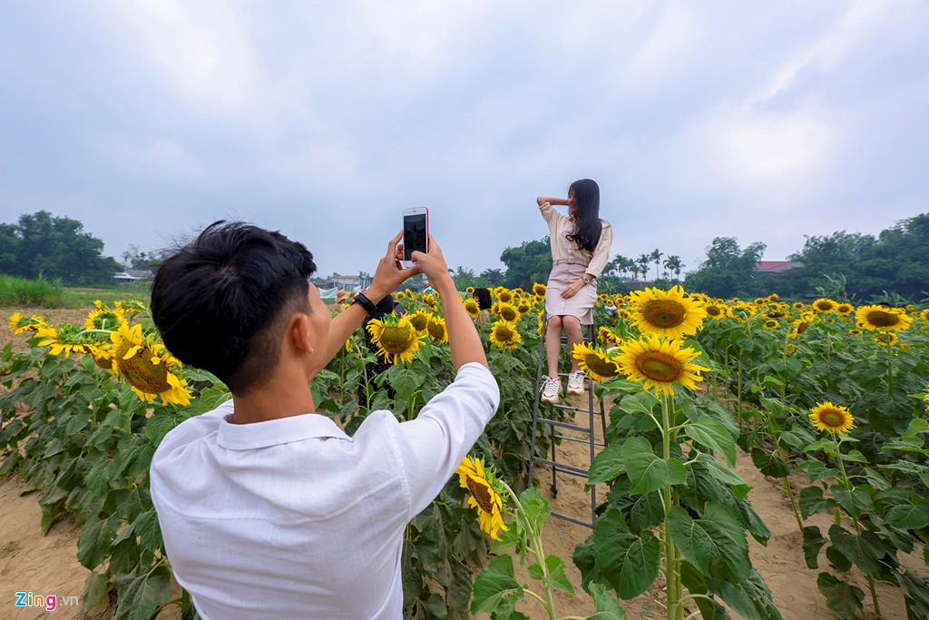 "Đồng hoa hướng dương ở đây rất đẹp, lại gần trung tâm thành phố. Nhân dịp nghỉ lễ 30/4, chúng em tranh thủ đến ghi lại những khoảnh khắc đẹp", Thanh Huyền, học sinh trường Quốc học Huế tâm sự.