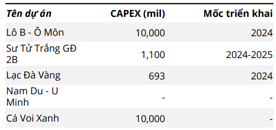 Các dự án được phê duyệt bao gồm Sư Tử Trắng GĐ 2B ( quy mô 1,1 tỷ USD), Lạc Đà Vàng (quy mô 693 triệu USD) và Lô B – Ô Môn (quy mô 10 tỷ USD). Trong đó dự án mỏ khí Lô B sẽ là động lực phát triển chính với quy mô đầu tư lớn, thời gian phát triển dự án dự kiến là 5 năm.