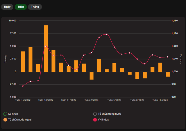 Thị trường đang được hỗ trợ từ vốn ngoại trong bối cảnh dòng tiền nội tiếp tục suy yếu. Dòng vốn nước ngoài từ các quỹ ETFs với hơn 4.000 tỷ giải ngân từ đầu năm đến nay từ các quỹ Fubon FTSE Việt Nam, quỹ VanEck Vectors, quỹ FTSE Vietnam, và dự báo các quỹ sẽ tiếp tục được giải ngân dần dần trong năm 2023. Dòng vốn ngoại vẫn tiếp tục là điểm nhấn của thị trường trong ngắn hạn?