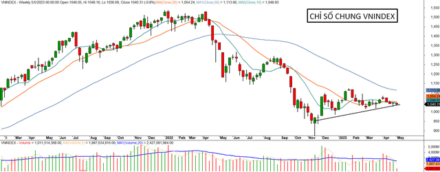 Vì là giai đoạn kỳ vọng có nhiều thông tin tích cực, cùng đà tăng của tháng 4 không ấn tượng, chúng tôi đánh giá áp lực chốt lời trong tháng 5/2023 có thể sẽ không quá mạnh. Do đó, trong kịch bản có xác suất xảy ra cao là thị trường tiếp tục duy trì trên vùng hỗ trợ 1.000 - 1.020 điểm và dòng tiền tiếp tục xoay vòng tại nhóm cổ phiếu vốn hóa vừa và nhỏ.