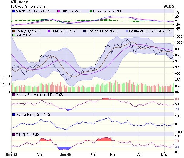 Phiên tăng điểm vừa qua có thể chỉ nằm trong kịch bản một nhịp hồi kỹ thuật kéo dài 3-5 phiên, với vùng kháng cự là 968-970 điểm (MA20).