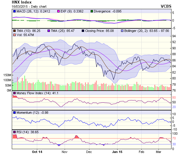 Triển vọng ngắn hạn của HNX-Index trở nên kém lạc quan  hơn. Xu hướng trung hạn  của chỉ số này sẽ được thử thách tại vùng 84.