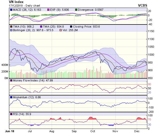 Dự báo, trong phiên giao dịch 18/12, VN-Index có thể hồi phục trở lại nếu test thành công hỗ trợ tại 930 điểm trong phiên.