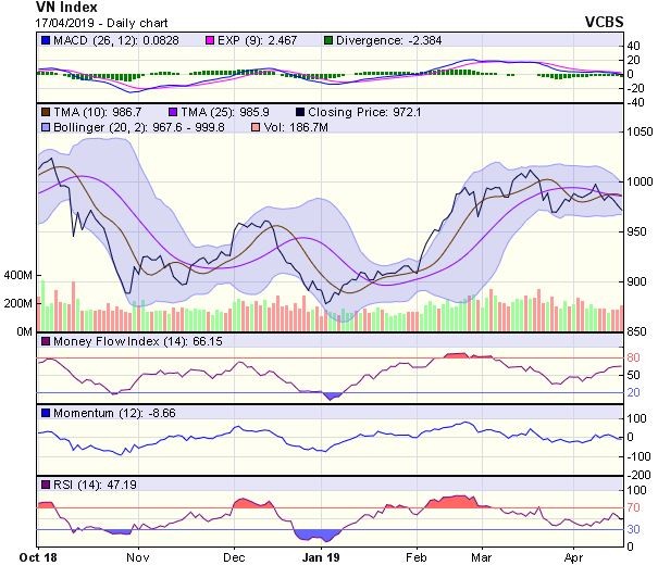 Vùng quanh 964 điểm sẽ là ngưỡng hỗ trợ quan trọng đối với chỉ số trong những phiên còn lại của tuần. Nếu ngưỡng điểm này bị xuyên thủng hoàn toàn thì mẫu hình đảo chiều Vai-Đầu-Vai sẽ được hoàn thành.