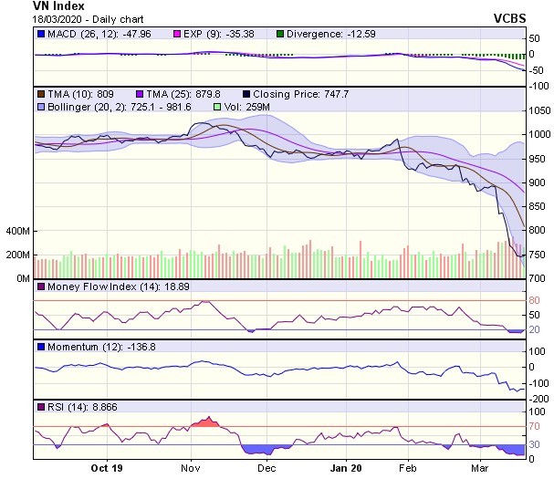 Vùng tích lũy sẽ tiếp tục nằm tại 720-800 điểm. Chỉ số còn chịu nhiều áp lực giảm điểm khi các đường MA hướng xuống với độ dốc tương đối lớn.