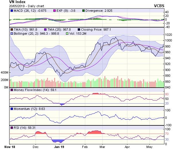 Sau khi vượt qua vùng kháng cự 980-983 điểm, chỉ số có thể sẽ sớm xuất hiện nhịp điều chỉnh để kiểm tra lại vùng điểm này trong một vài phiên kế tiếp.