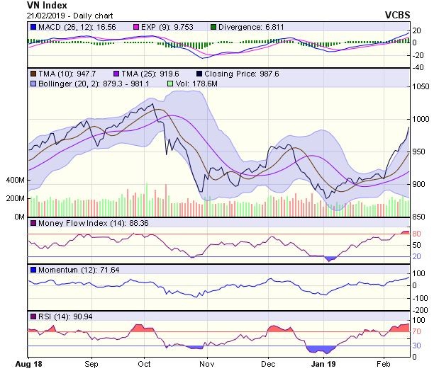 Với xung lực tăng điểm như hiện tại, chỉ số có khả năng sẽ lấp đầy khoảng trống giảm giá (975-991 điểm) được tạo thành vào tháng 10/2018 trong những phiên tới.
