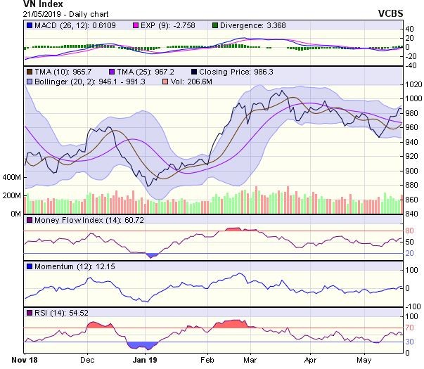 Sau khi vượt qua vùng kháng cự 980-983 điểm, chỉ số có thể chịu áp lực điều chỉnh để kiểm định lại vùng điểm này trong một vài phiên kế tiếp.