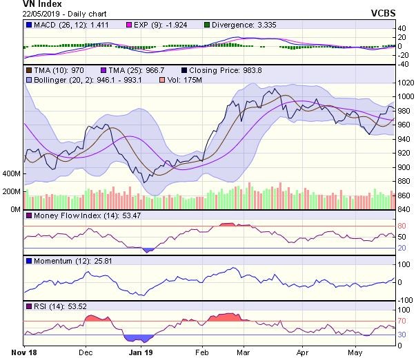 Góc nhìn kỹ thuật phiên 23/5: Chỉ số nhiều khả năng sẽ tiếp tục giảm về vùng 980-983 điểm