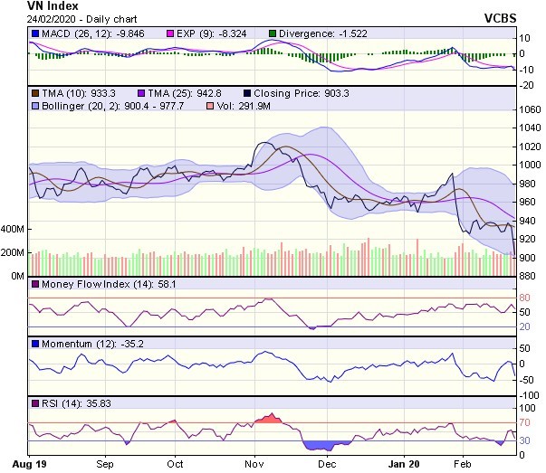 Trong trường hợp VN-Index tiếp tục giảm điểm, vùng 895-900 sẽ là vùng hỗ trợ gần nhất, giúp thị trường hồi phục. Ở chiều ngược lại, vùng 920-925 sẽ là vùng kháng cự đối với bất cứ nỗ lực hồi phục nào của thị trường.