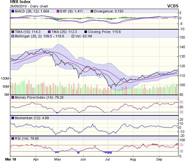 Biểu đồ kỹ thuật HNX-Index. Nguồn: VCBS.