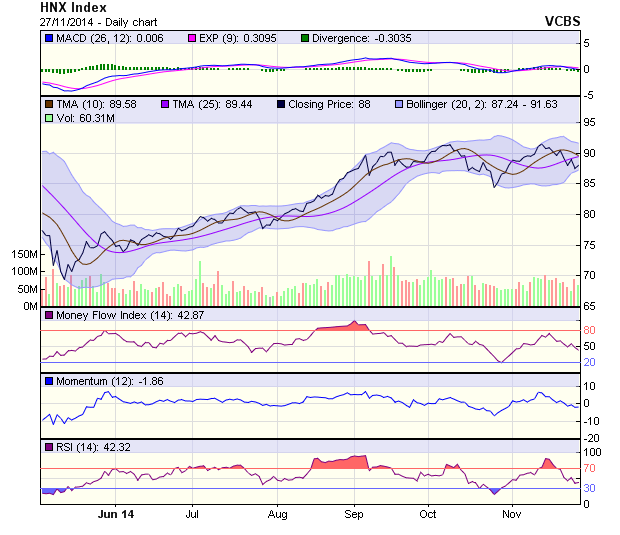Góc nhìn kỹ thuật phiên 28/11: Đang có tín hiệu chuyển biến tích cực (ĐTCK) ĐTCK lược trích báo cáo phân tích kỹ thuật của một số CTCK cho phiên giao dịch ngày 28/11. Sự kiện chứng khoán đáng chú ý ngày 28/11 Cổ phiếu cần quan tâm ngày 28/11 Khối ngoại bán ròng hơn 200 tỷ trong phiên 27/11 Phiên giao dịch 27/11: VN-Index đang bị ép Nhận định thị trường ngày 28/11: Vẫn còn nhiều lý do để thận trọng Tác giả N.Tùng 27/11/2014 20:01 Tweet Từ Khoá cổ phiếu thị trường giao dịch công ty chứng khoán nhà đầu tư phiên giao dịch giảm giá VN-INDEX