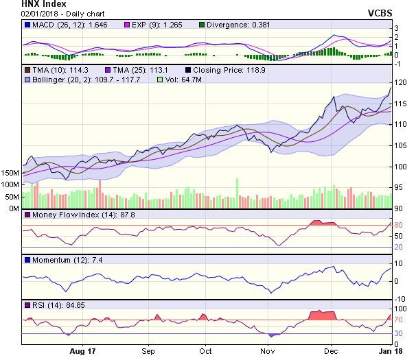 Biểu đồ kỹ thuật HNX-Index. Nguồn: VCBS