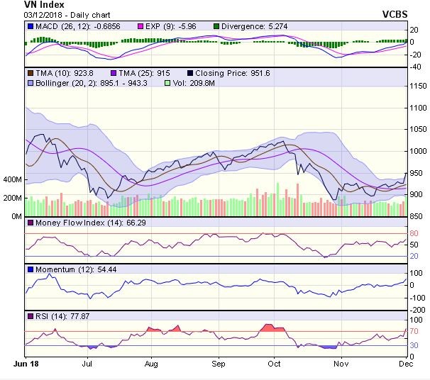 Dự báo, trong phiên giao dịch 4/12, VN-Index có thể sẽ giằng co và rung lắc mạnh trong khoảng giá 950-960 điểm.