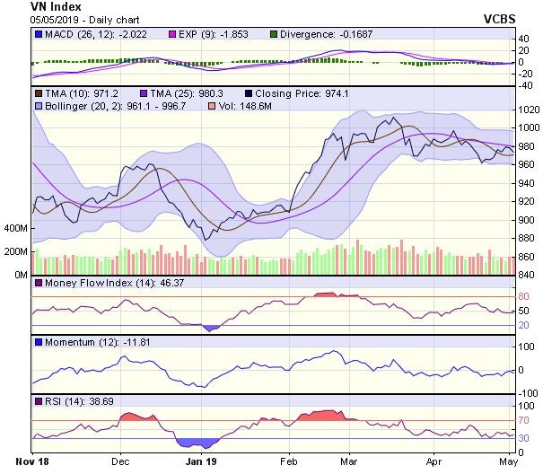 Trong trường hợp, chỉ số không thể vượt qua được ngưỡng kháng cự trên, thì chỉ số có thể sẽ chịu áp lực suy giảm về vùng hỗ trợ 960-965 điểm (vùng đáy tháng 4/2019).