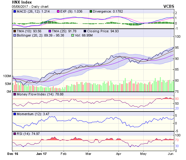 Biểu đồ kỹ thuật HNX-Index. Nguồn: VCBS