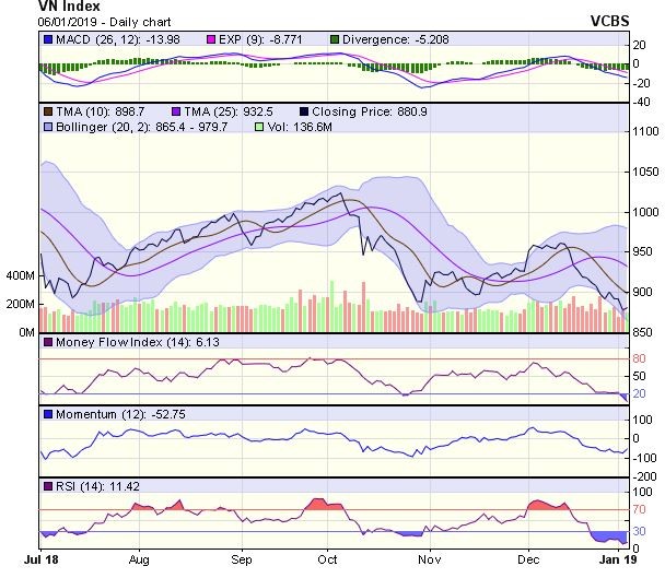 Dự báo, trong tuần giao dịch tiếp theo (7/1-11/1), xu hướng của VN-Index sẽ tiếp tục là rủi ro và những nhịp hồi lên có thể sớm kết thúc, ngưỡng 880 điểm sẽ cần được quan sát thật kỹ.