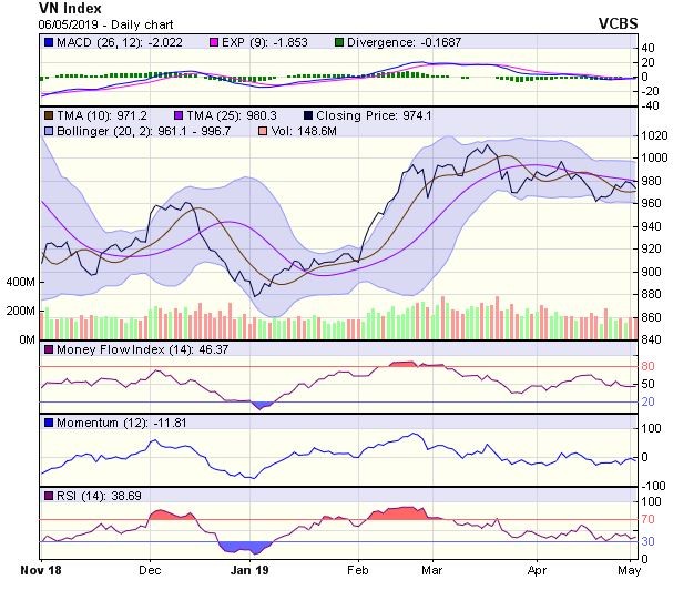 Hiện tại, chỉ số đang nằm dưới ngưỡng 964-968 điểm, vốn là 1 vùng hỗ trợ khá mạnh của chỉ số trong thời gian vừa qua.