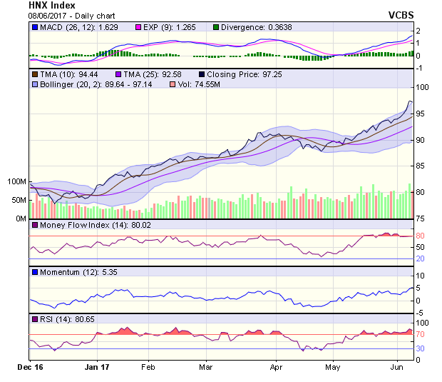 Biểu đồ kỹ thuật HNX-Index. Nguồn: VCBS