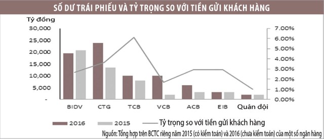 Hiện tỷ trọng vốn trái phiếu so với số dư tiền gửi khách hàng còn khiêm tốn (khoảng 2% đến hơn 3% tại các ngân hàng lớn), nhưng tỷ trọng này có thể sẽ sớm được cải thiện khi hoạt động phát hành trái phiếu dự báo tiếp tục diễn ra trong năm 2017 và các năm sau đó, trong bối cảnh các ngân hàng đang có áp lực phải tăng quy mô vốn trung và dài hạn.