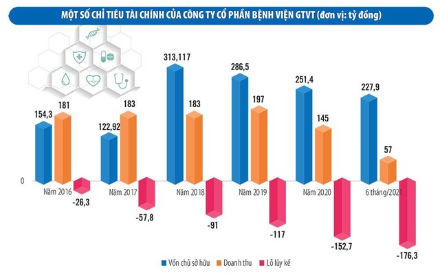 Bên cạnh đó, sau khi cổ phần hóa, Bệnh viện GTVT không còn được ngân sách hỗ trợ chi thường xuyên như các đơn vị công lập (khoảng 25 tỷ đồng/năm), trong khi đó phát sinh thêm chi phí khấu hao tài sản khoảng 30 tỷ đồng/năm, nên Bệnh viện rơi vào tình trạng lỗ từ 16 tỷ đồng đến 35 tỷ đồng/năm trong ròng rã 5 năm gần đây.