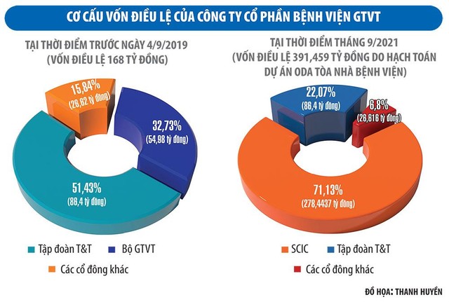 Trong khi đó, tại Quyết định số 1129/QĐ-TTg ngày 21/7/2015 của Thủ tướng về việc phê duyệt Phương án thí điểm cổ phần hóa Bệnh viện GTVT đã nêu rõ: “Vốn điều lệ sẽ được điều chỉnh tăng phần vốn nhà nước tương ứng giá trị quyết toán Dự án ODA tòa nhà Bệnh viện, đồng thời sẽ tiếp tục bán phần vốn nhà nước để duy trì tỷ lệ vốn điều lệ mà Nhà nước nắm giữ tại Bệnh viện GTVT là 30%”.