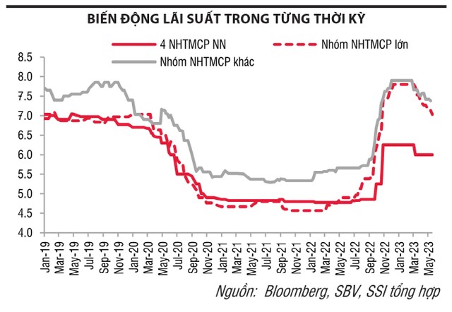 Chưa kể, những thông tư mới ban hành để hỗ trợ doanh nghiệp cũng tác động tới lãi vay. Chẳng hạn, Thông tư số 02/2023/TT-NHNN ban hành ngày 23/4/2023 cho phép cơ cấu lại thời hạn trả nợ và giữ nguyên nhóm nợ khách hàng gặp khó khăn. Điều này đồng nghĩa với việc các ngân hàng chưa thu nợ khi đến hạn, trong khi vẫn phải đảm bảo chi trả lãi suất tiền gửi, dẫn tới giảm doanh số cho vay và chậm lại vòng quay vốn trong nền kinh tế, từ đó gây áp lực trở lại lên khả năng cân đối vốn và dư địa giảm lãi suất.
