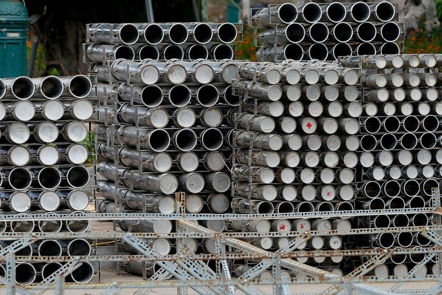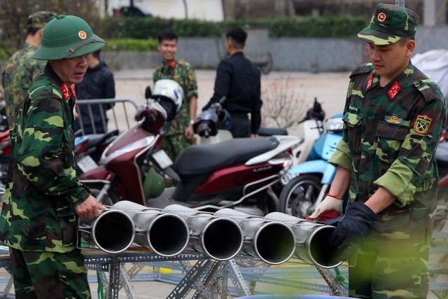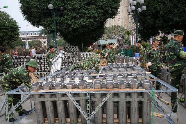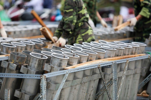 Những dàn pháo từ tầm thấp, trung, cao được lực lượng chức năng lắp đặt rất cẩn thận trước giờ khai hỏa.