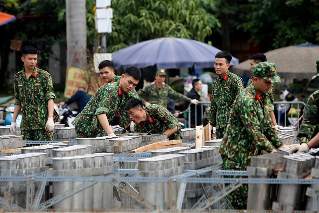 Trận địa pháo tại khu vực vườn hoa Lạc Long Quân đang được lực lượng chức năng chuẩn bị.