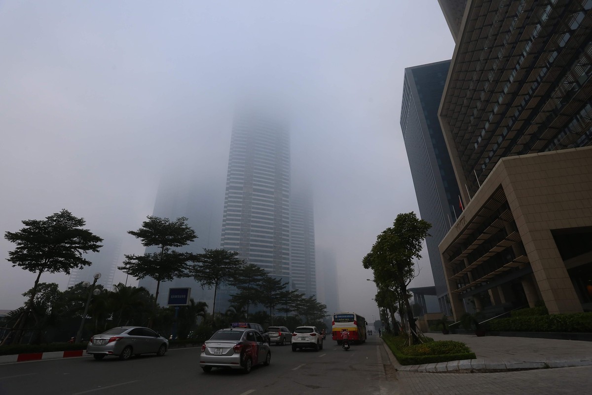 Tòa nhà KeangNam "mất nóc" vì sương mù.