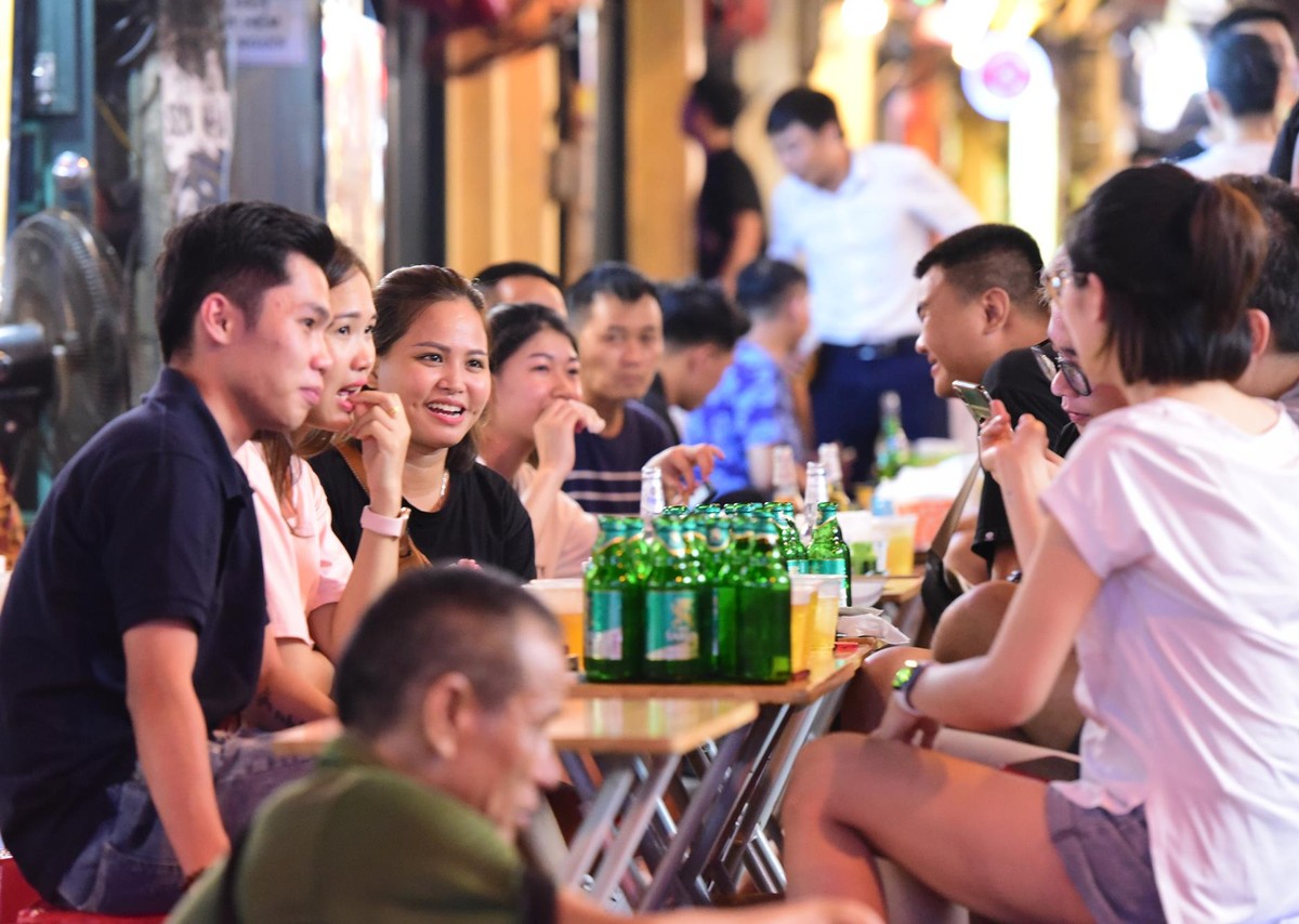 Hình ảnh thực khách gồm cả người Việt Nam và nước ngoài tụ tập uống bia chém gió, chuyện trò rôm rả, nhâm nhi từng ngụm bia mát lạnh vẫn diễn ra như bình thường.