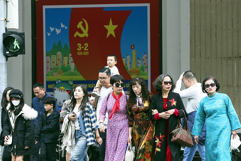 Kỷ niệm 95 năm Ngày thành lập Đảng Cộng sản Việt Nam (3/2/1930 - 3/2/2025) và mừng xuân Ất Tỵ, các tuyến đường của Hà Nội được trang hoàng cờ hoa, mô hình và nhiều biểu ngữ chào mừng.